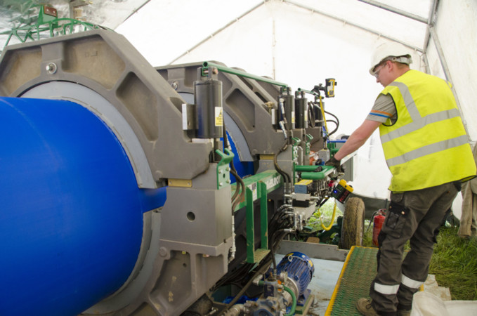 La MegaMc® 1648 es una máquina poderosa con un sistema de control de un solo operador que fusionará a tope tuberías y la mayoría de los accesorios sin soportes especiales ni remoción de las mordazas exteriores. La energía hidráulica asiste en todas las funciones de fusión, incluida la operación completa de las mordazas, los elevadores de tuberías, el calentador y el refrentador. El modelo Serie 2 tiene fuerza de fusión adicional y es capaz de trabajar en zanjas con un carro removible de 3 o 4 mordazas.